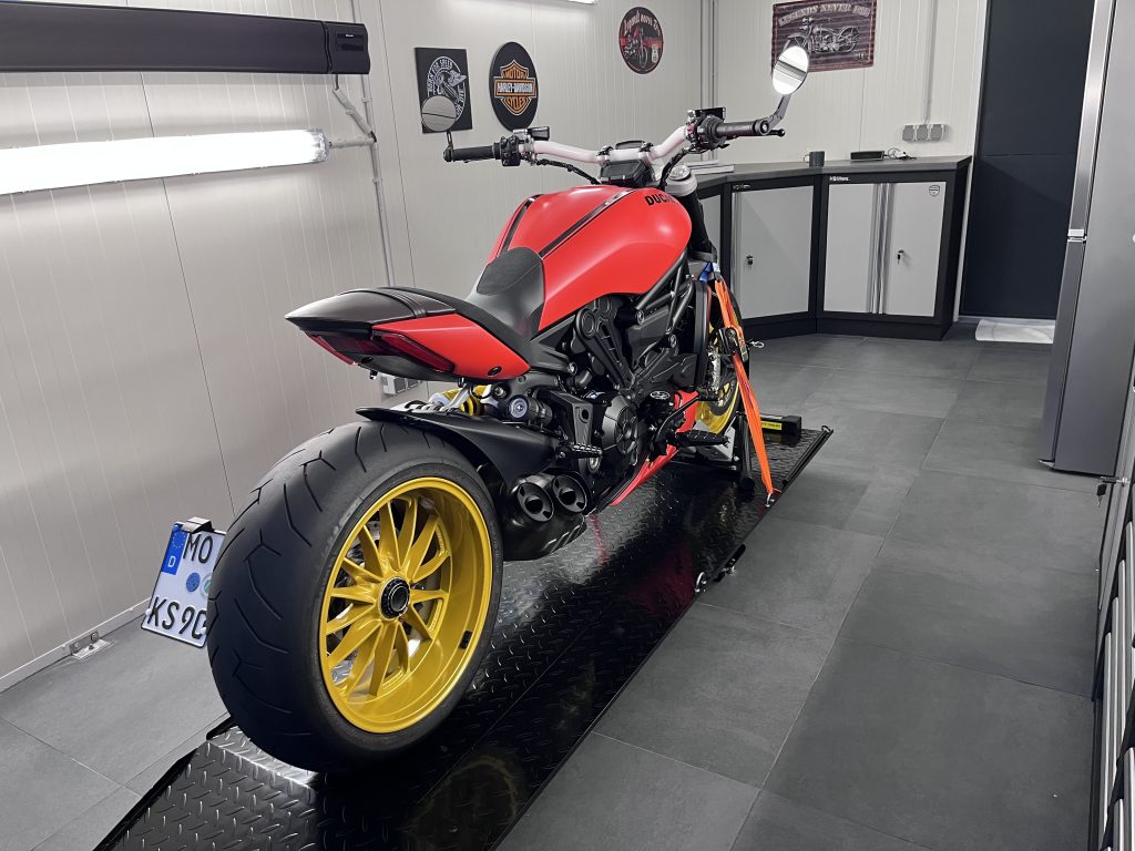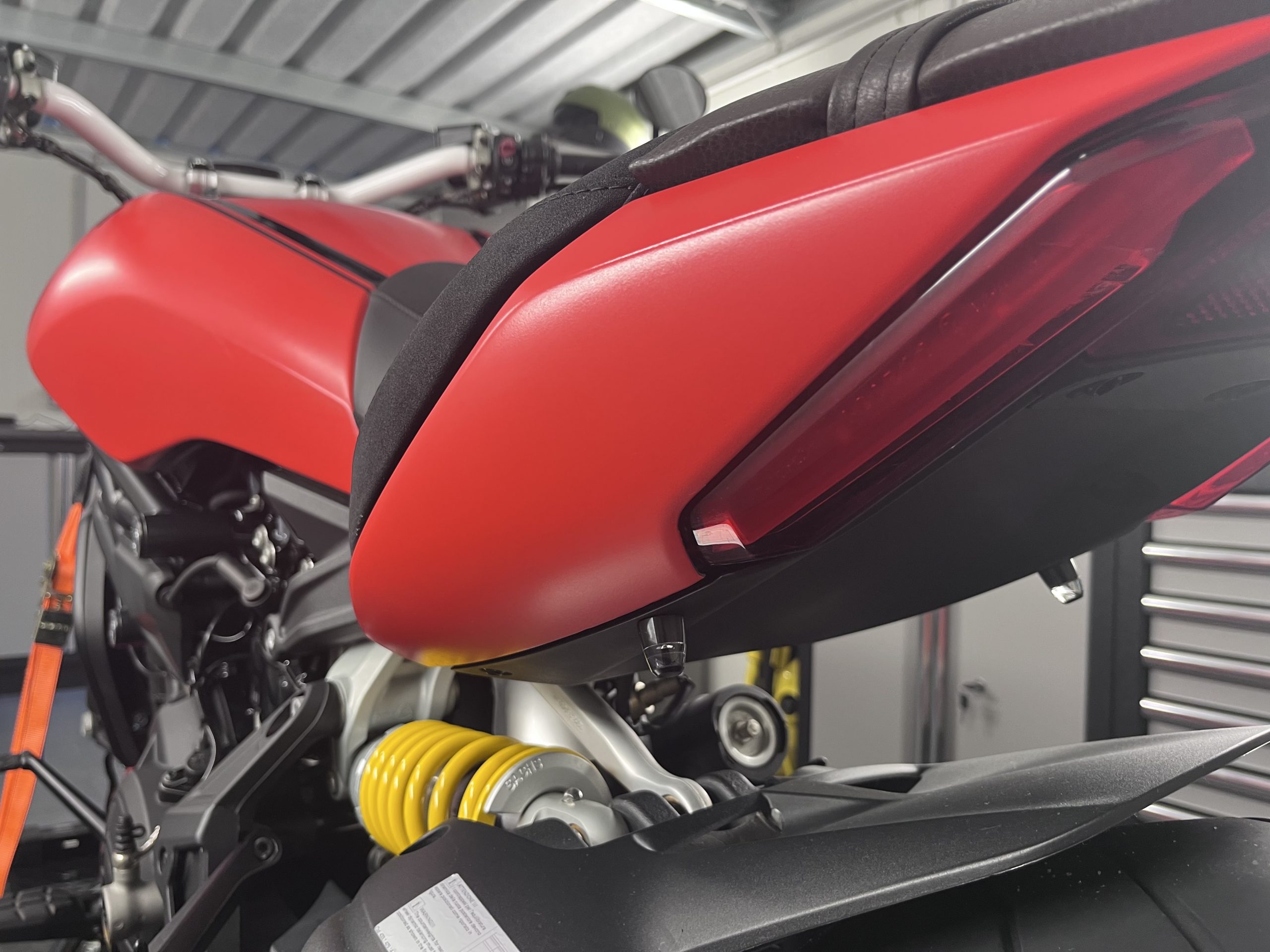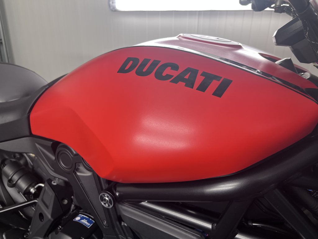 Aufbereitung einer Ducati mit matter roter Folierung